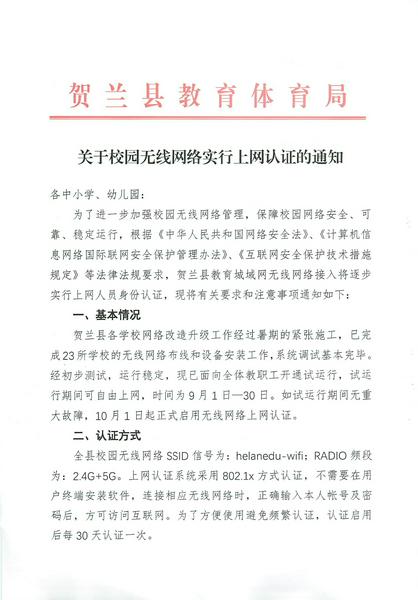 关于校园无线网络实行上网认证的通知