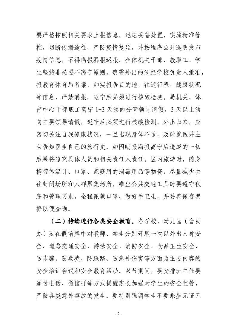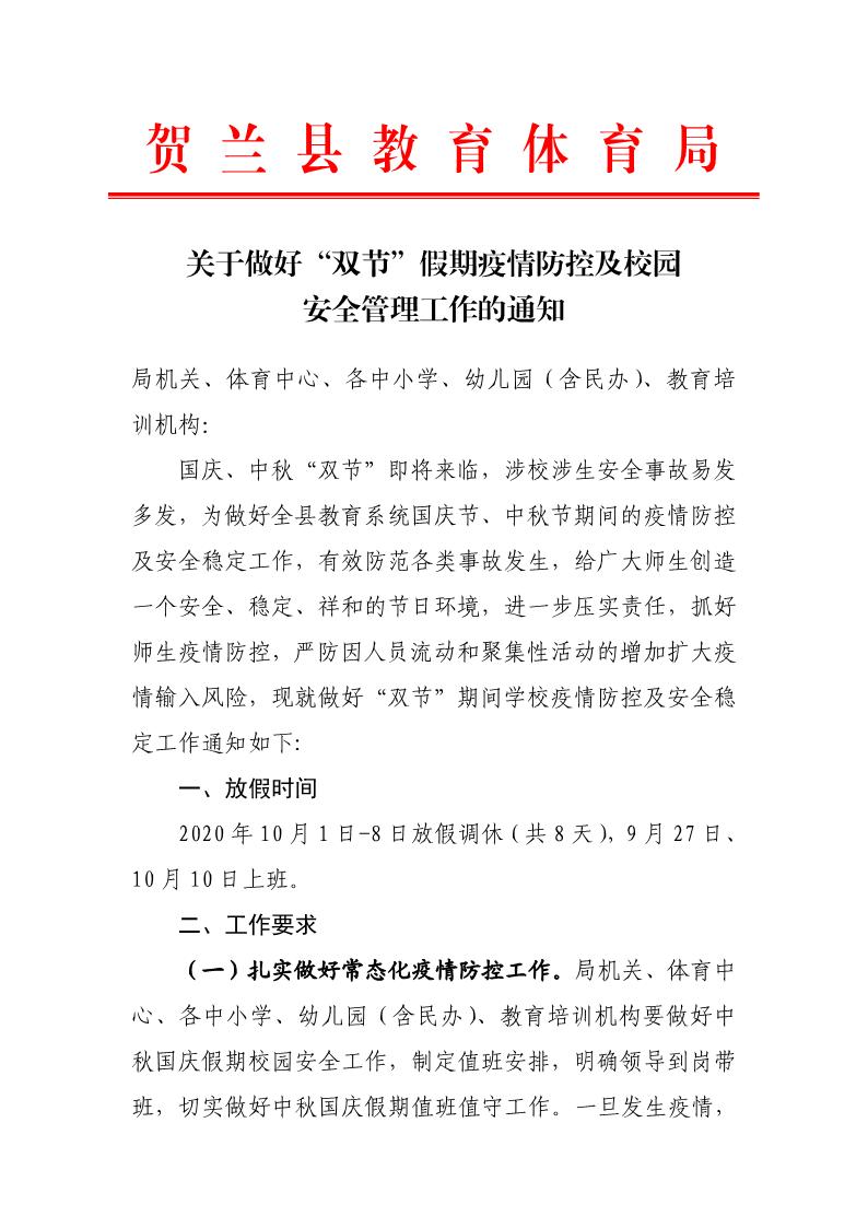 关于做好“双节”假期疫情防控及校园安全管理工作的通知