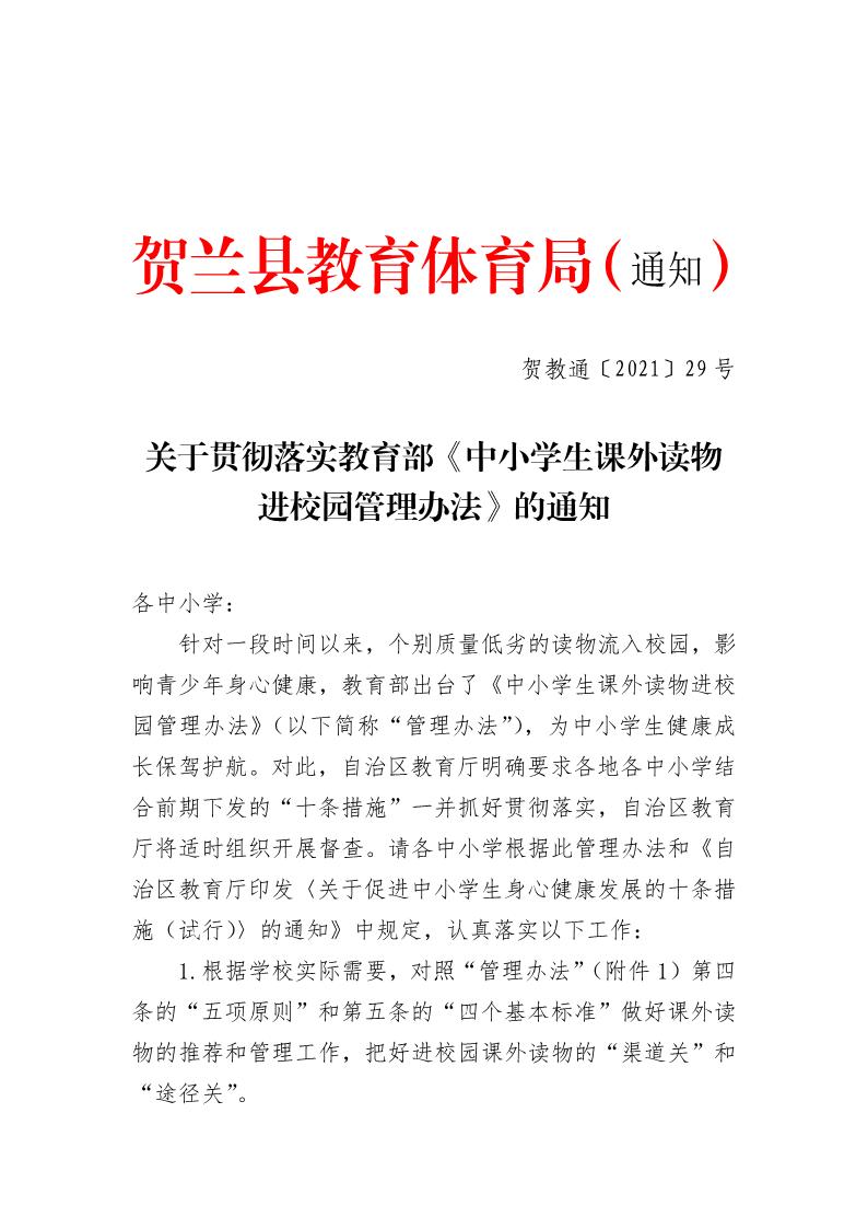 关于贯彻落实教育部《中小学课外读物进校园管理办法》的通知.pdf