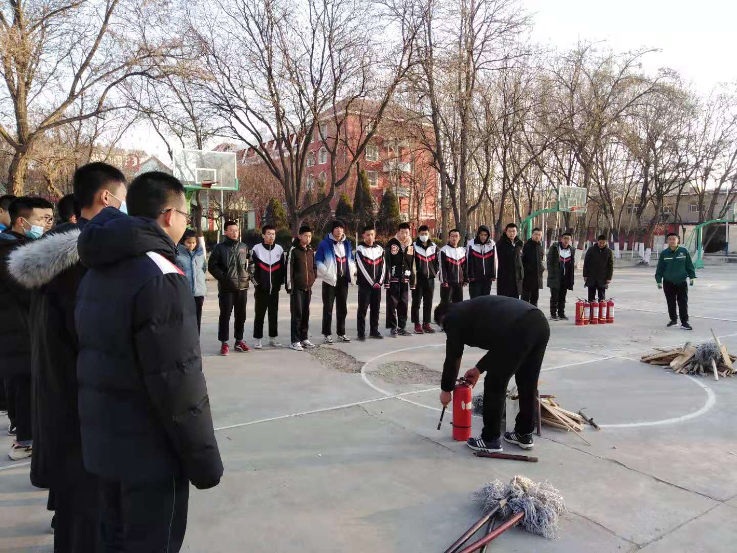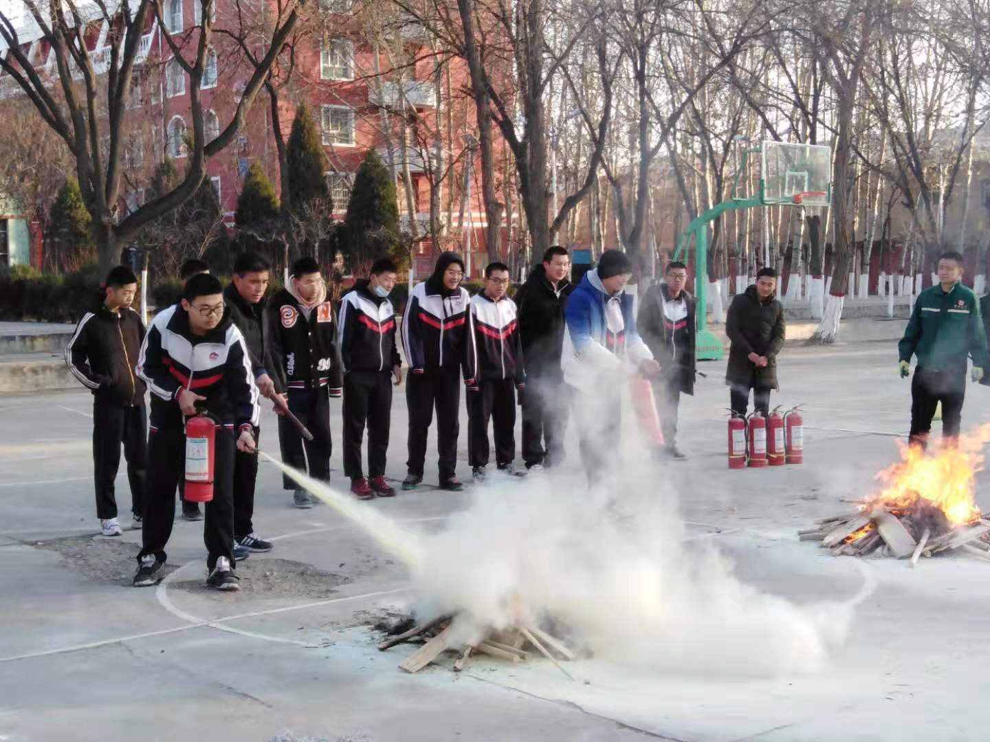 为进一步做好校园消防安全工作,加强学生和教职员工的消防安全意识,提高防火应急处理能力,12月15日下午4点,贺兰一中高中政教处组织高中各班安全班长和学校保安人员进行消防灭火演练。
