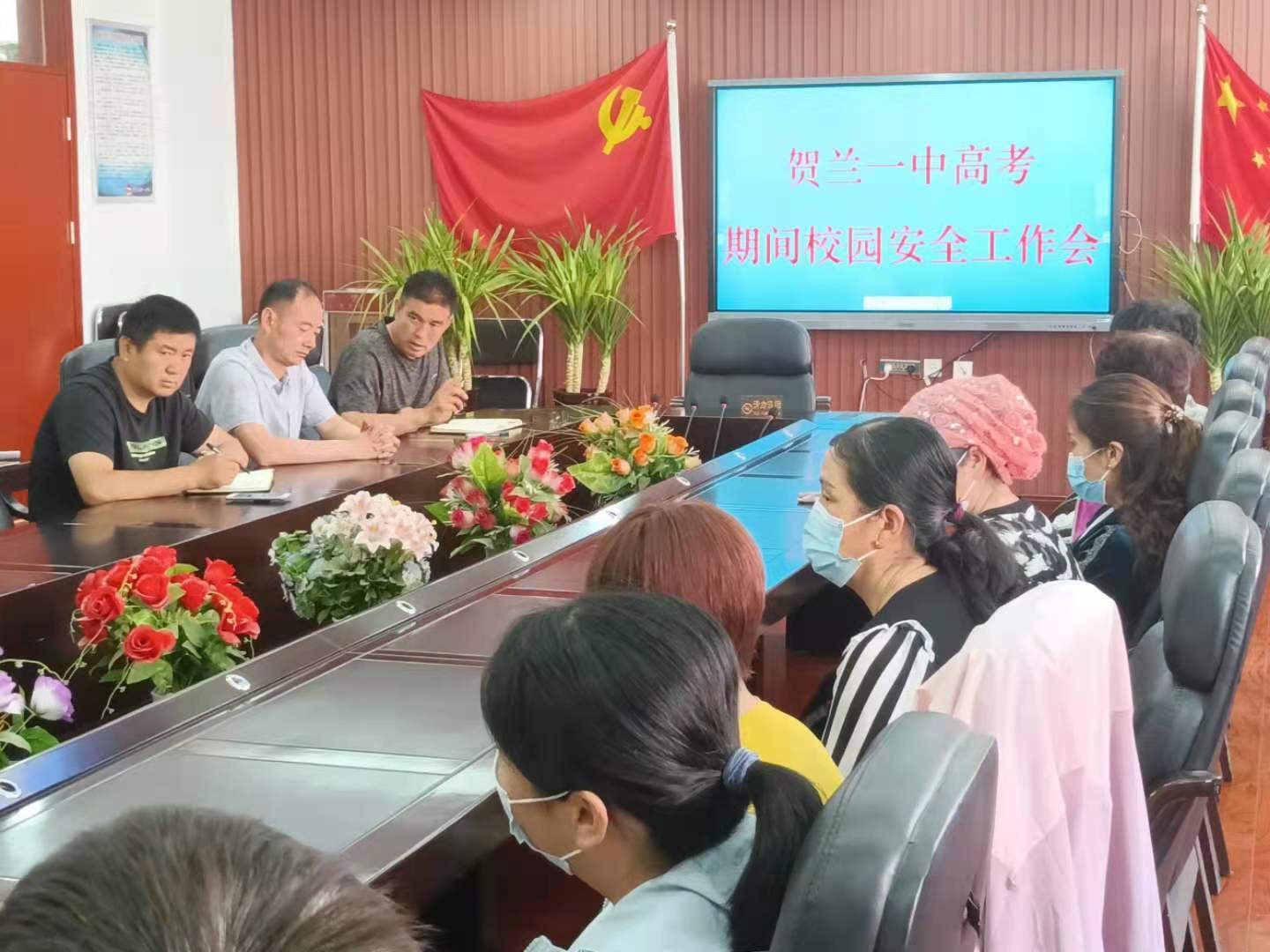 临近高考,为进一步强化校园安全管理,预防校园安全事故发生,切实保障师生人身安全和高考有序进行,6月4日上午9点,贺兰一中高中部召开高考期间校园安全工作会议。全体保安、宿管及政教处相关人员20余人参加了会议。副校长刘长革主持。