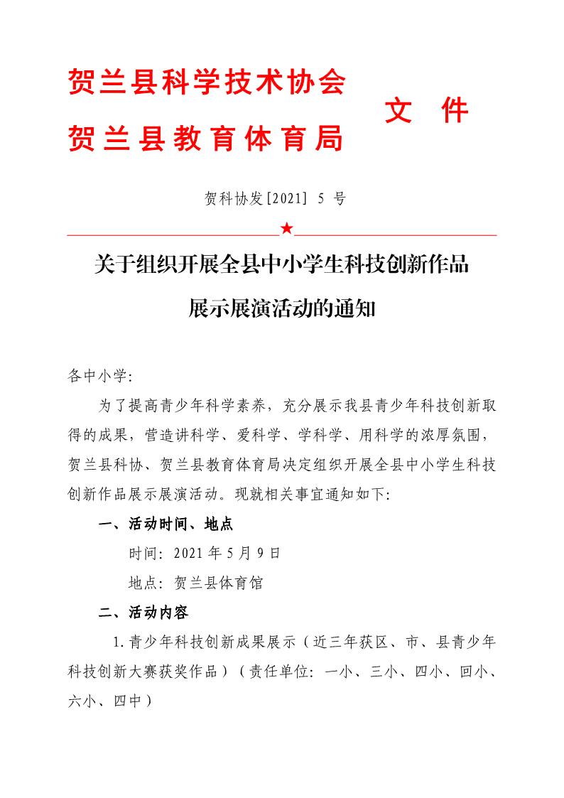 贺科协发【2021】5 号(关于组织开展全县中小学生科技创新作品展示展演活动的通知).pdf